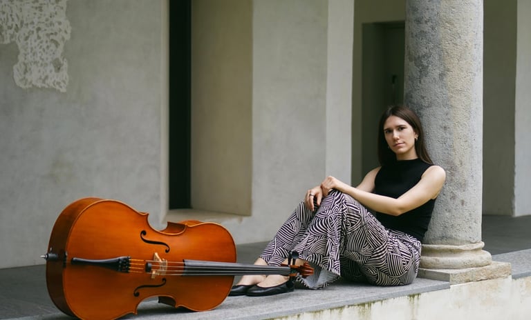From 2021 to 2023, she was a student at the Accademia Chigiana with Antonio Meneses, where she received the Diploma di Merito, and was recently selected for the project “Talenti Musicali Italiani nel Mondo,” in collaboration with CIDIM.